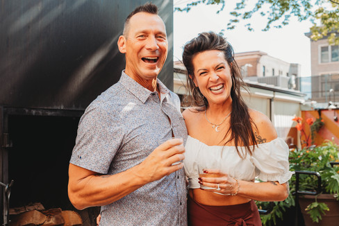 After a few casual shots and smiles all around, Rich led Kitty outside to the cozy patio fireplace. The ambiance was warm and inviting, with soft flickers of light and the quiet buzz of a Minneapolis evening. And there, in front of the fireplace, he got down on one knee. Kitty’s reaction was a beautiful mix of surprise, joy, and tears. It was pure magic to photograph.